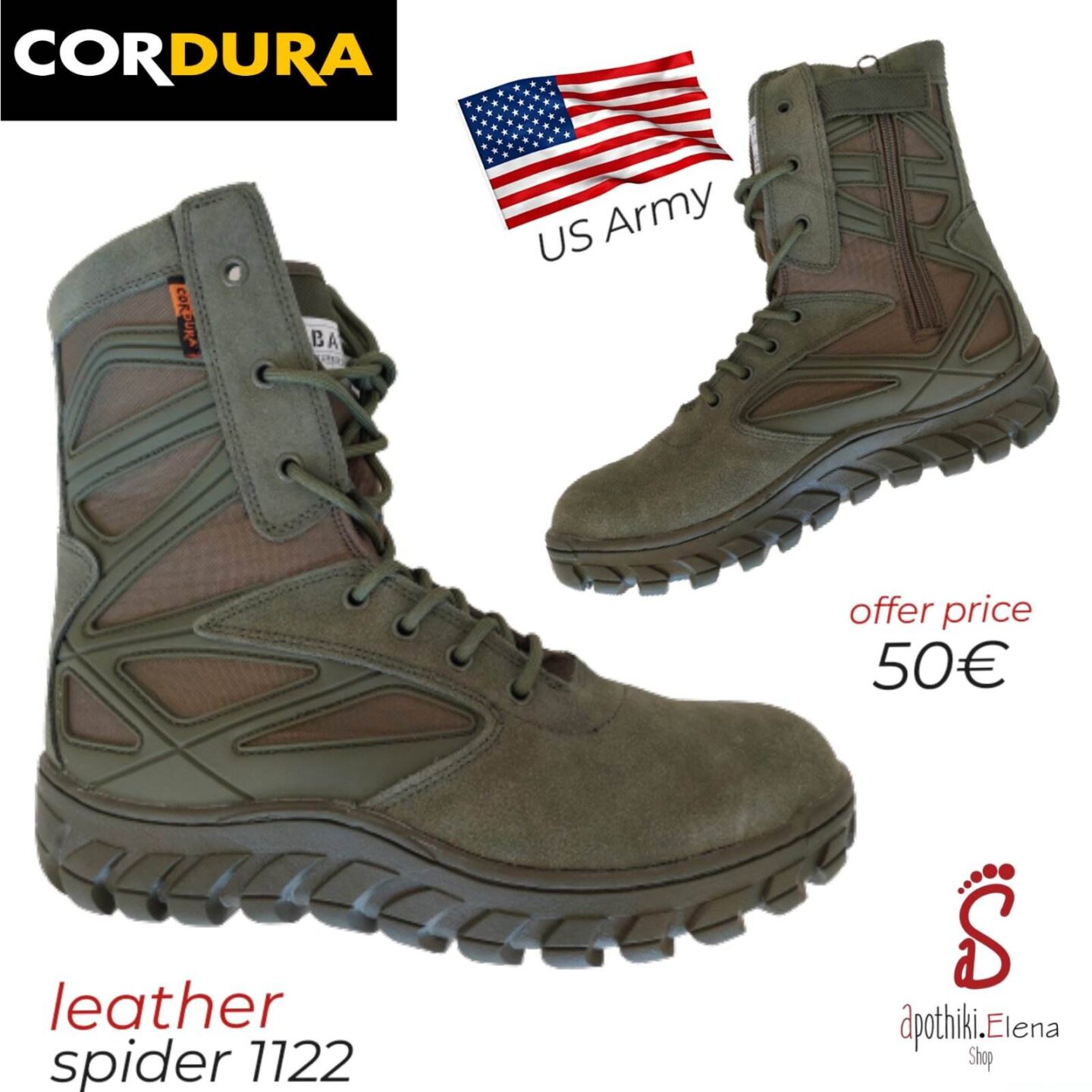 Δερμάτινα ελαφριά us army style , ελεύθερου χρόνου άρβυλα με γνήσιο Δέρμα Μόσχου, Αδιάβροχο cordura.