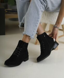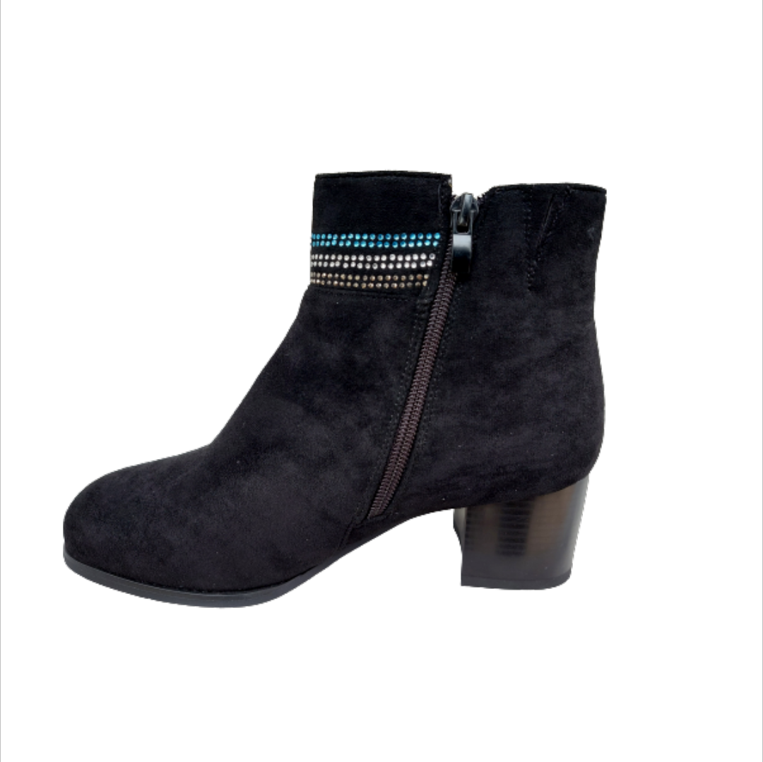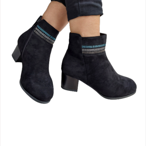Γυναικείο μποτάκι σε suede με τακούνι ύψους 5εκ. Διαθέτει λειτουργικό φερμουάρ εσωτερικά.
